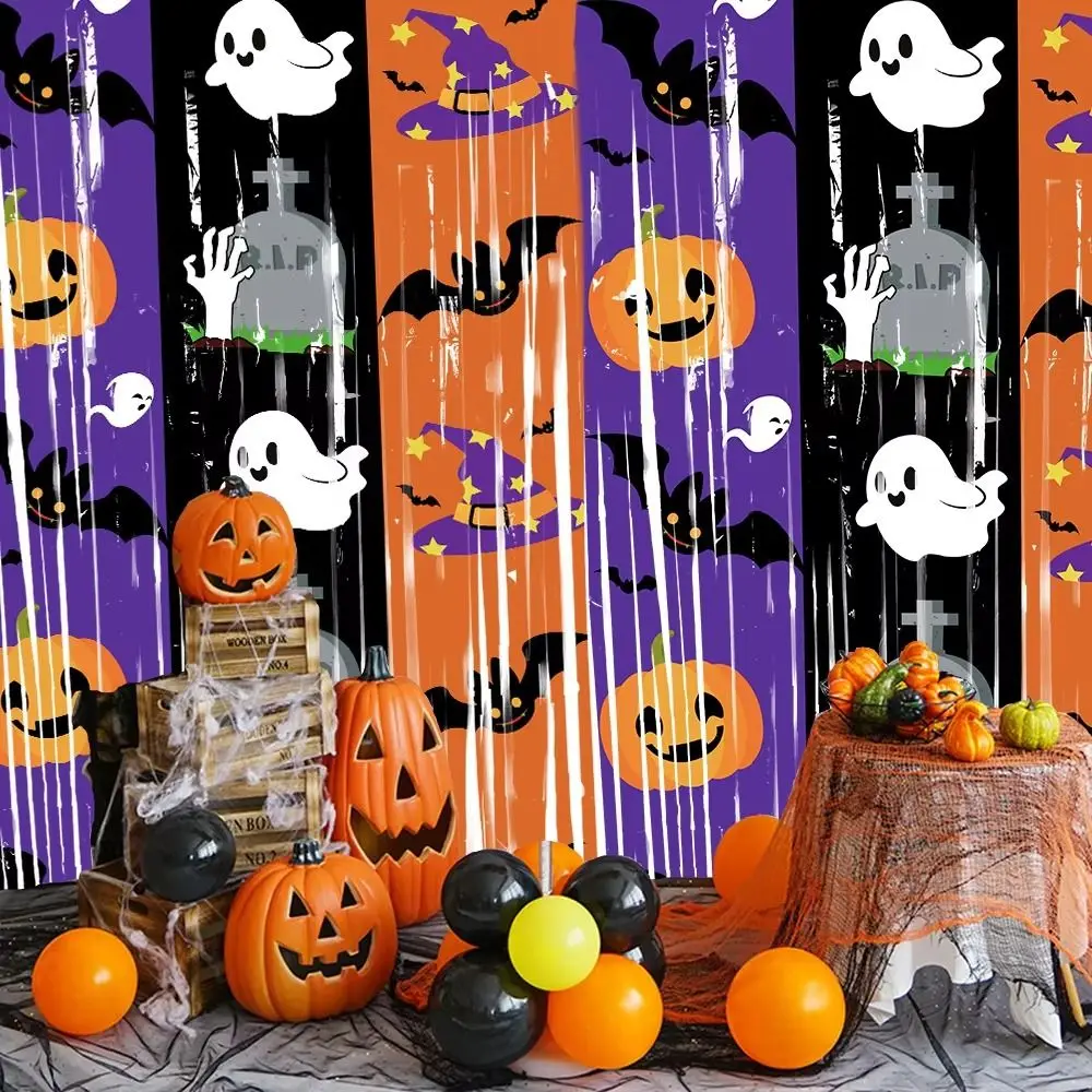 Crafted from reflective plastic tinsel and printed with festive motifs, it's designed to catch the light and captivate guests from the moment they enter. Whether you're setting up a photo booth, decorating a classroom, or planning a haunted house, this reusable curtain brings a delightful mix of magic and mischief to your Halloween décor.