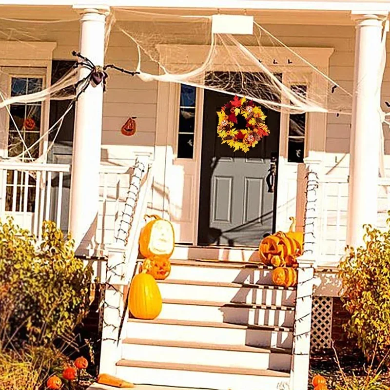• Style: Faux eucalyptus with maple leaves and mini pumpkins