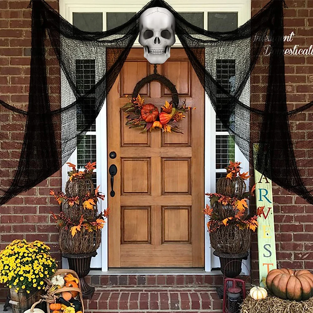 Set the scene for a chilling celebration with this Creepy Cotton Halloween Decoration Cloth, your must-have prop for transforming any room into a haunted hideaway. Made from lightweight cotton gauze in a solid colour (available in white or black), this versatile fabric can be draped over windows, doors, tables, furniture, or walls to instantly create a tattered, ghostly effect.